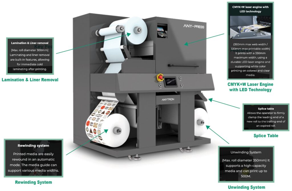 Anytron ANY-PRESS • 13-Inch LED Laser Toner Printer with CMYK+ White Capability.